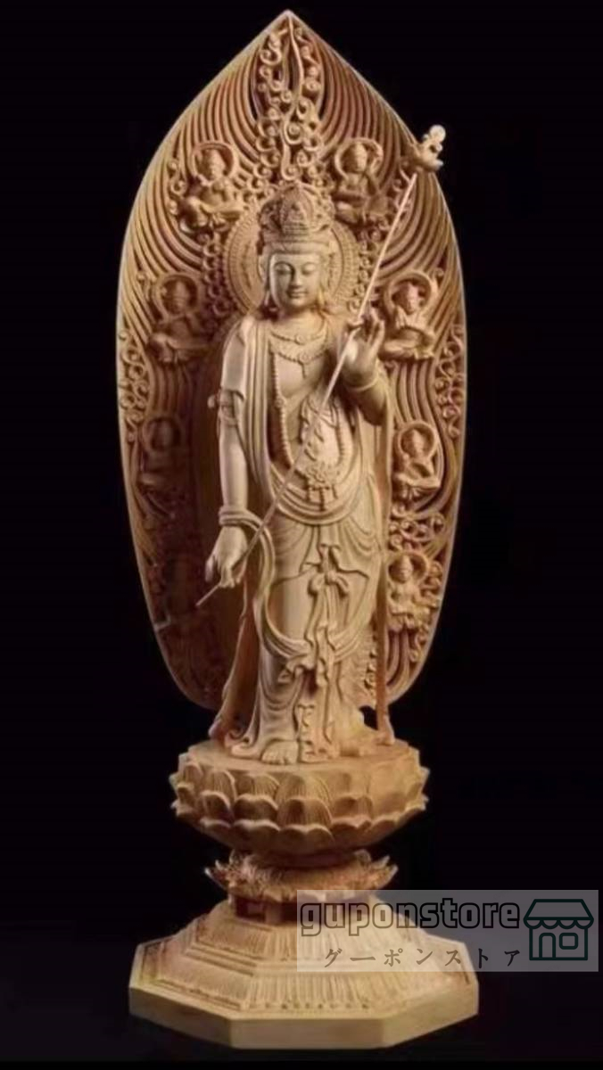 - 極上品 月光観音菩薩 総檜材 精密彫刻 仏教工芸品 木彫仏教 仏師で仕上げ品 月光観音菩薩立像 高43cm