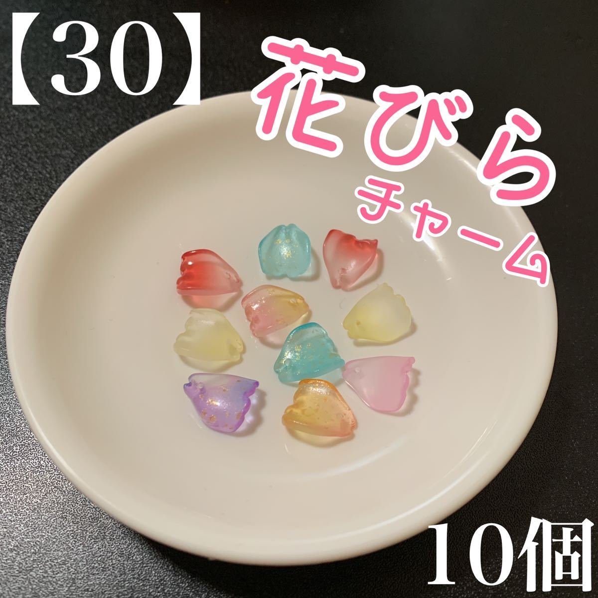 - 【30】 ランダムミックス 花びら ガラス チャーム 10個