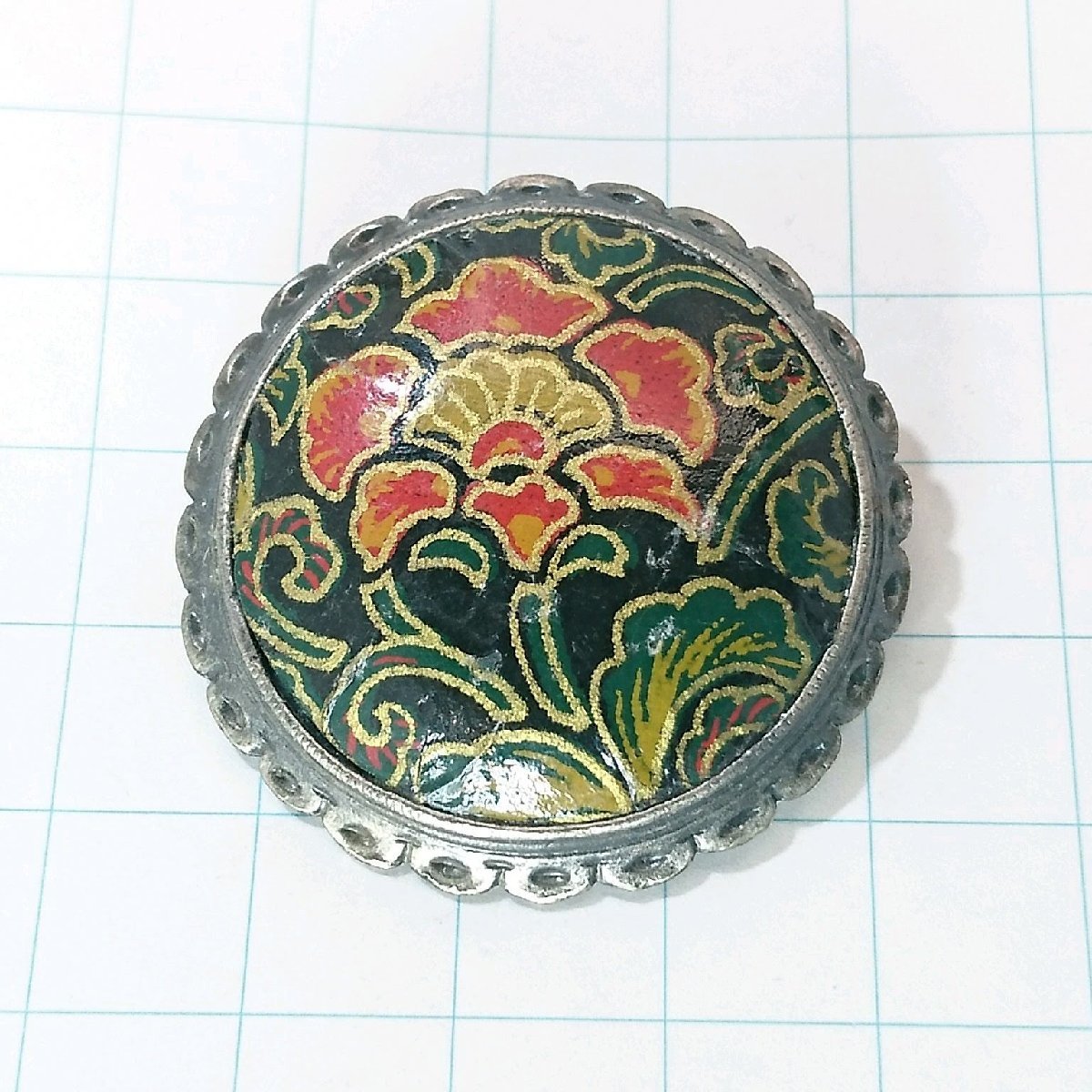 - 送料無料)ビンテージ☆椿の花モチーフ 和風☆アンティークブローチ A11630