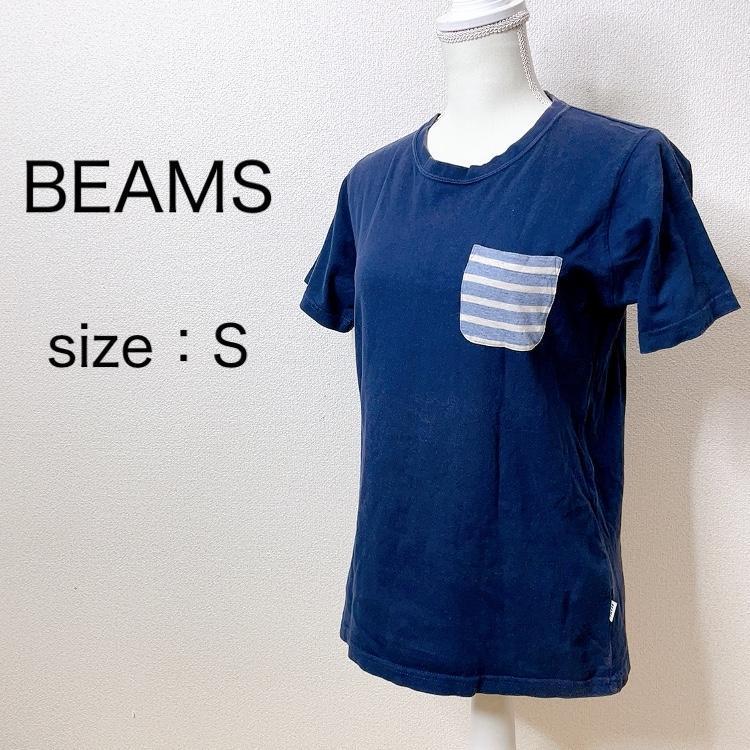 - 【BEAMS】ビームス 半袖Tシャツ 丸首 胸ポケット ラウンドネック 紺 S