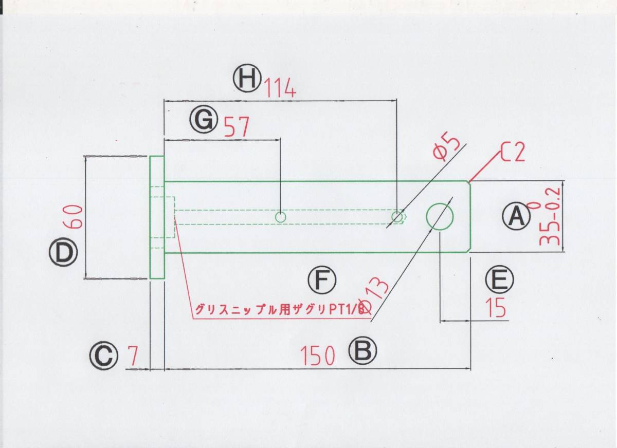 - NO1325 Φ35用 ツバ下150mm グリス穴付きバケットピン
