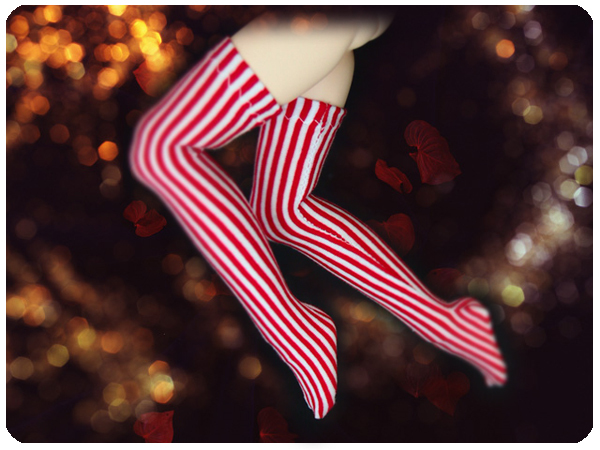 - ●ドール用オーバーニーソックス*ストライプ柄*レッド&ホワイト●MSD(女の子)/MDD共通サイズ●