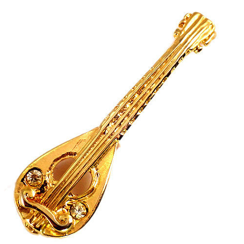 > ピンバッジ・バンジョー音楽ラインストーン楽器ゴールド金色◆フランス限定ピンズ◆レアなヴィンテージものピンバッチ