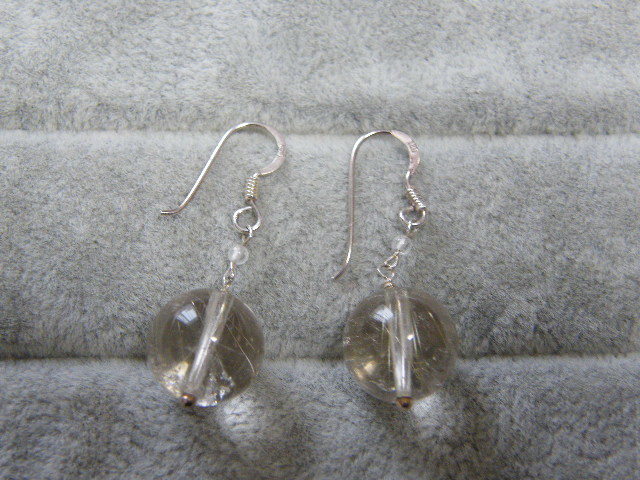 - 3029.天然ルチル シルバー925 カラーストーン 水晶 ピアス