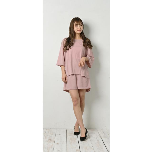 - ☆ ピンク ☆ L-LL セットアップ ショートパンツ 通販 五分丈 トップス レディース 部屋着 普段着 ゆったり リラックス 柔軟性 伸縮性 上