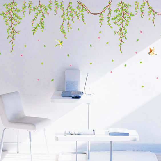 - ウォールステッカー YB049 ガーデン 葉 鳥 ナチュラル 癒す DIY 壁紙 インテリアシート 剥がせるシール 送料無料