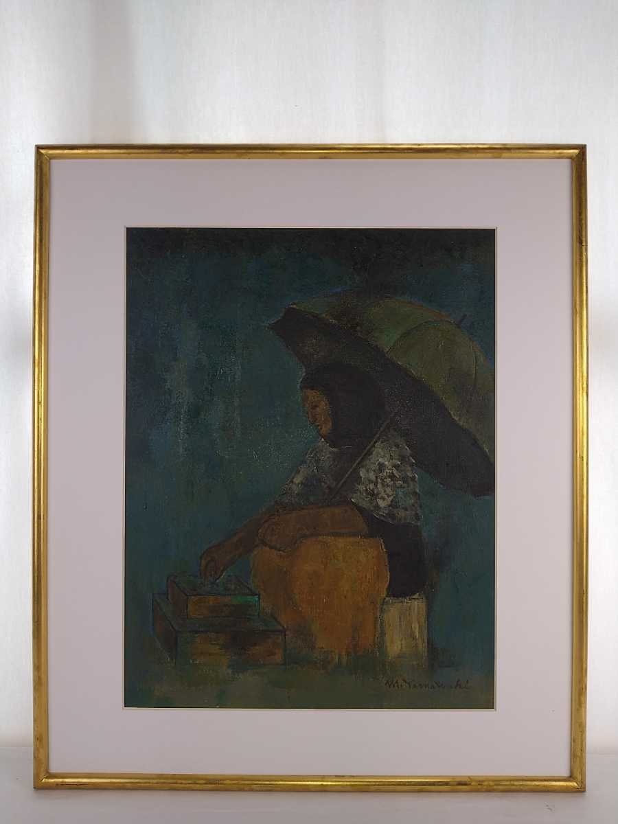 - 真作 山脇真人 油彩「貝を売る女」画寸 41cm×51cm 東京都出身 立軌会同人 路上行商人の寡黙に働く様子を描く 日動画廊取扱い作品 4780