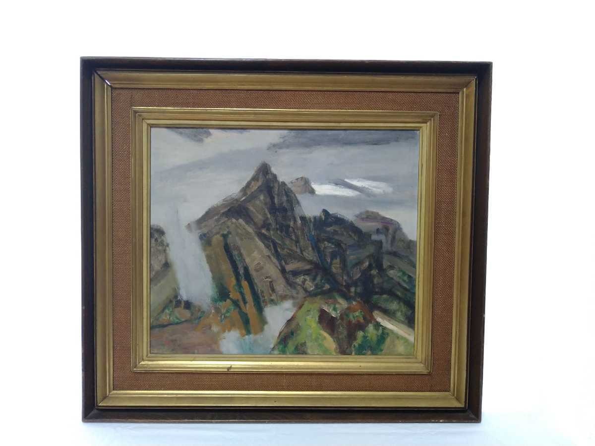 - 真作 田原輝 油彩「上高地風景」画寸 53×45.5cm F10 佐賀県出身 示現会の創立に参加 東京教育大学名誉教授 明神岳の雄大なる勇姿 4199