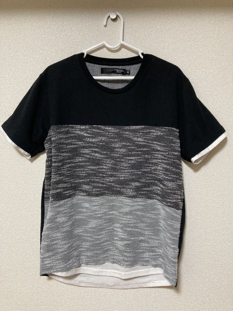 - しまむら メンズ Tシャツ 半袖 重ね着風 ブラック 黒 M