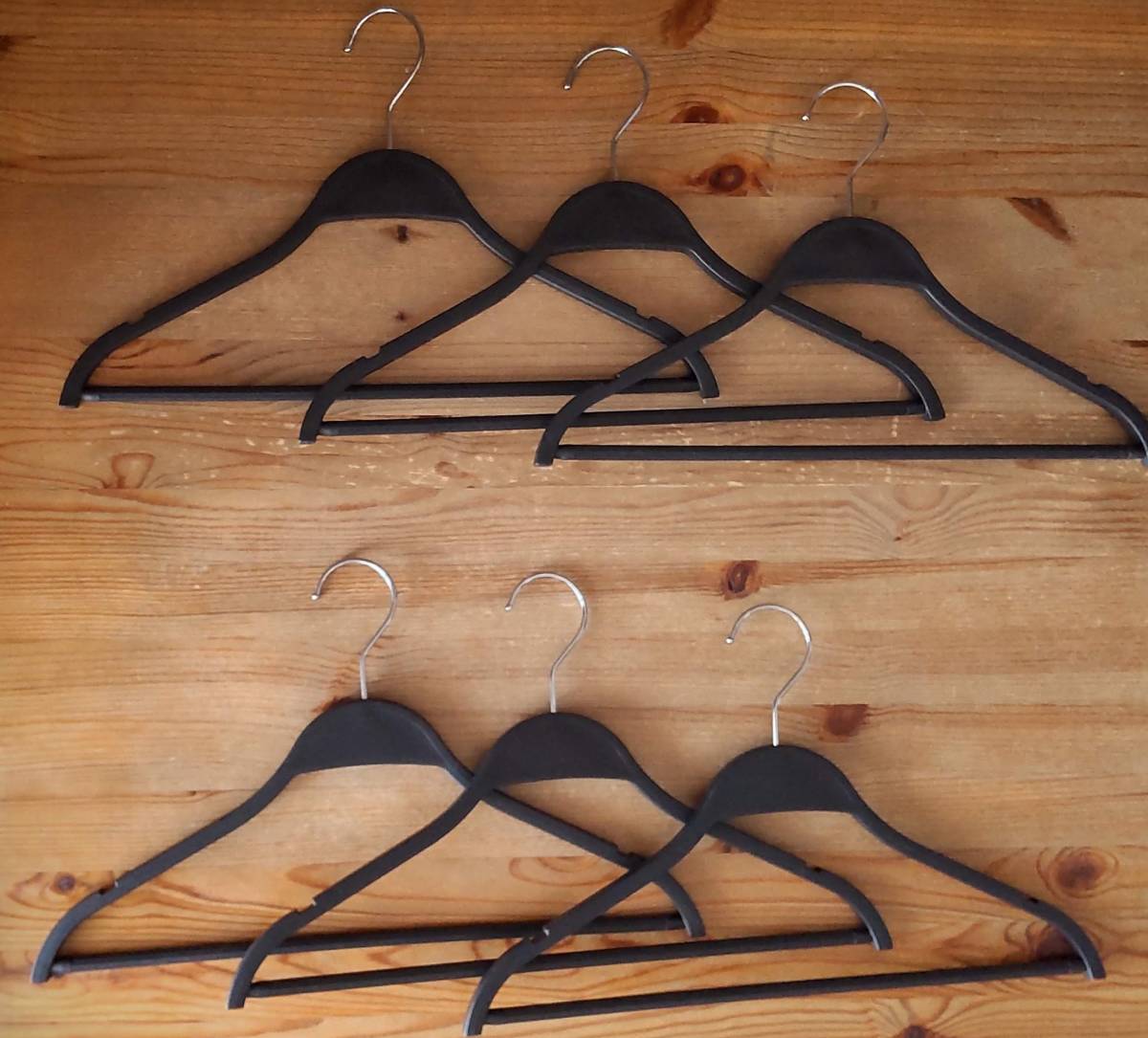 - ハンガー 6本 横幅最大40.8㎝ 黒×シルバー 肩部分に凹み付き滑り落ちにくい フックは360度回転で使用しやすい