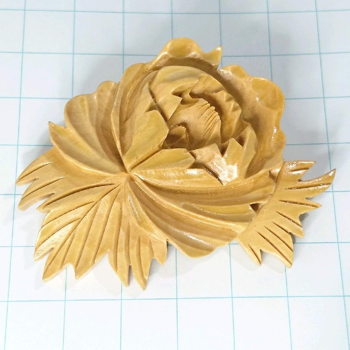 - 送料無料)ビンテージ☆木彫り お花モチーフ 工芸品☆アンティークブローチ A12545
