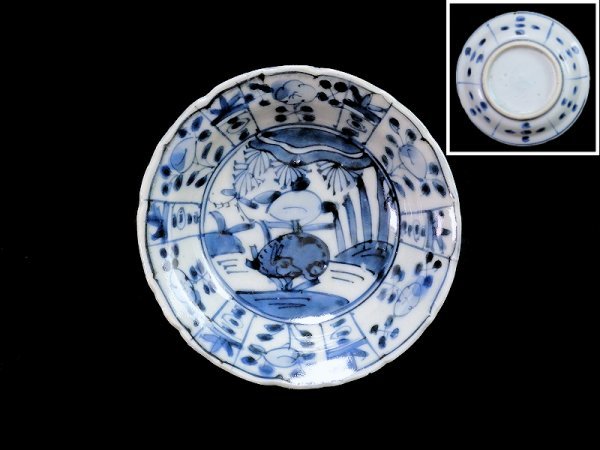 - fbke-A582m 清渡 染付 芙蓉手 花の図 豆皿
