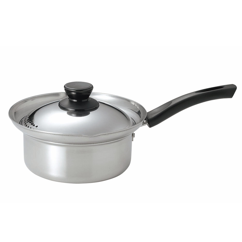 - 片手鍋 吹きこぼれにくい 湯切り鍋 16cm 満水1.8L ステンレス製 IH対応 ニルワーカ カクセー NW-05/8737x2個セット/卸/送料無料