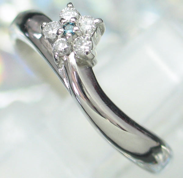 - pt900 指先を華やかに★星型ダイヤ ブルーダイヤ リング★9.5号★3.374g★プラチナ★指輪★愛f 3245cxy