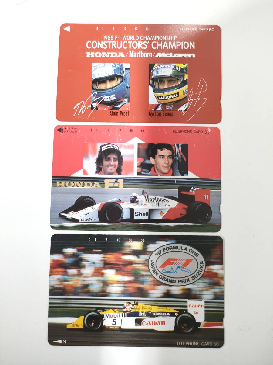 > 153 未使用【アイルトン・セナ Ayrton Senna 】1988 87’ F-1 SUZUKA テレホンカード 50度数×3枚 Alain Prost レトロ 当時物 テレカ 希少