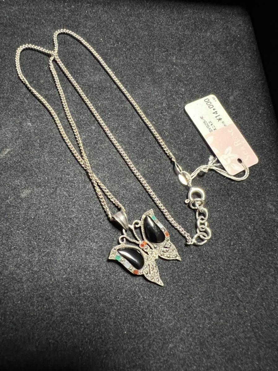 - シルバーネックレス SV925 オニキス 蝶モチーフ