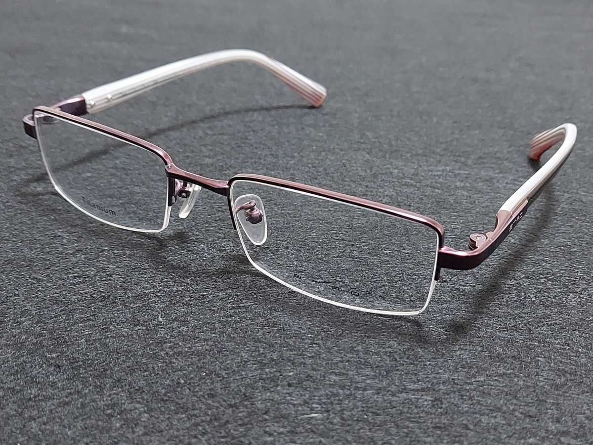 - 新品 ETRO エトロ 日本製 メガネ 眼鏡 高級感 上品 ハーフリム チタン 赤紫