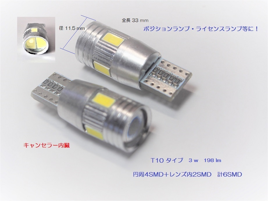 - LED T10 4SMD+2SMD レンズ付き キャンセラー内蔵 送料¥140 !!