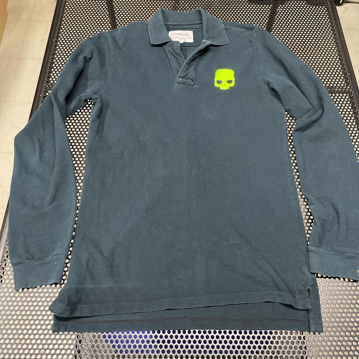 - ルーマニア製 ハイドロゲン HYDROGEN 長袖 鹿子 ポロシャツ 全体的に色あせ、色落ちあり 紺 ネイビー 黒? Mサイズ 長袖ポロシャツ