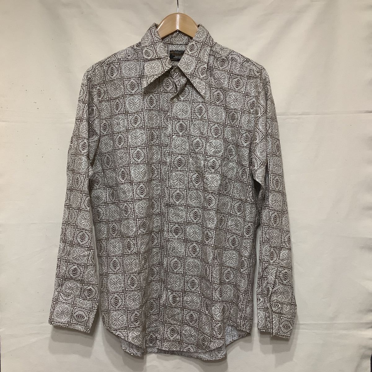 > H18、ビンテージオールド総柄シャツ古着アメカジUSA製アメリカ製フリー&イージーマイフリーダム長袖シャツ 70年代柄物サイズL