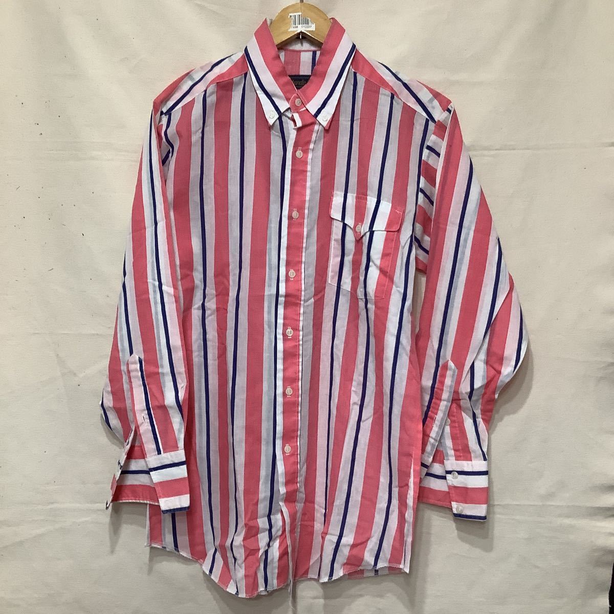 > H93ストライプ長袖シャツ古着アメカジUSAアメリカフリー&イージーサイズMマイフリーダムピンクボタンダウンシャツ
