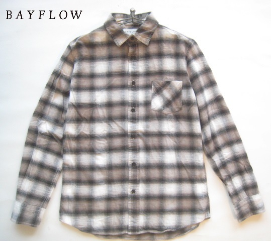 - 美品!!ベイフロー BAYFLOW*胸ポケット付き チェック柄コットンネルシャツ 2 実寸S 白×黒×茶