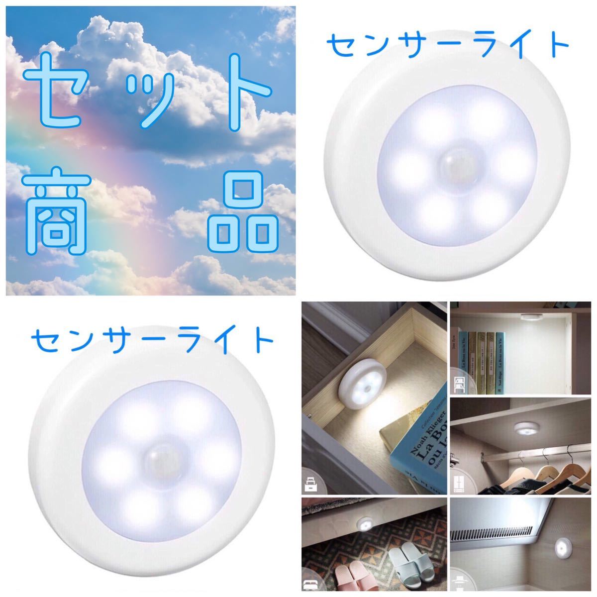 - 人感センサーライト 昼光色 2個セット LEDライト 電池式