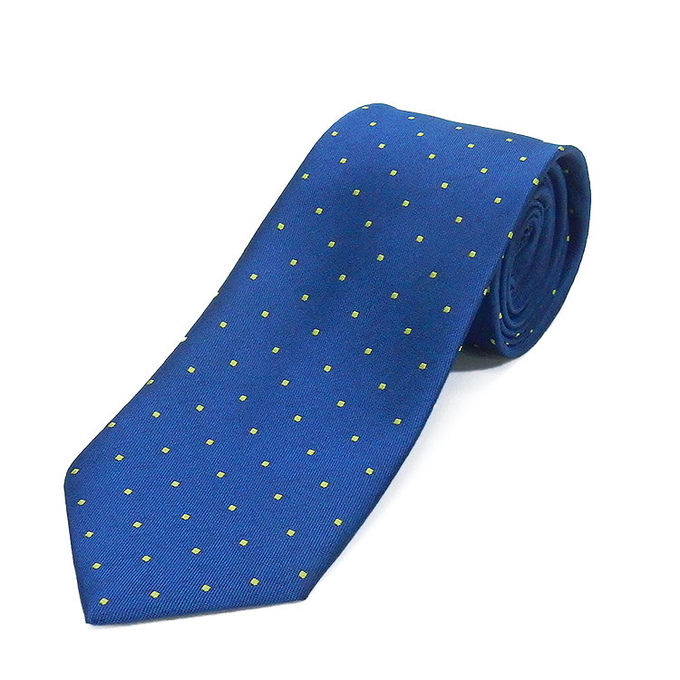 - 日本製 ネクタイ 甲州織 青×黄/ドット テトロン糸使用 洗濯機OK メール便OK BUN-KD02