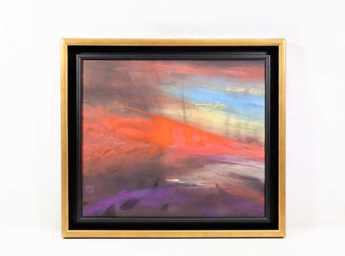 - 真作 岸上ゆか 日本画「暁」画寸 10号 和歌山県出身 創画会会友 秋野不矩に師事 森羅万象の全てに潜む宇宙の理に強く突き動かされ描く 6875