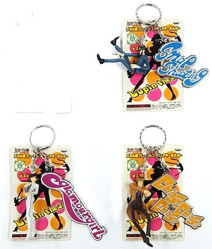 - b★未使用・非売品★ルパン三世 メタル製プレート&フィギュアキーホルダーx3種