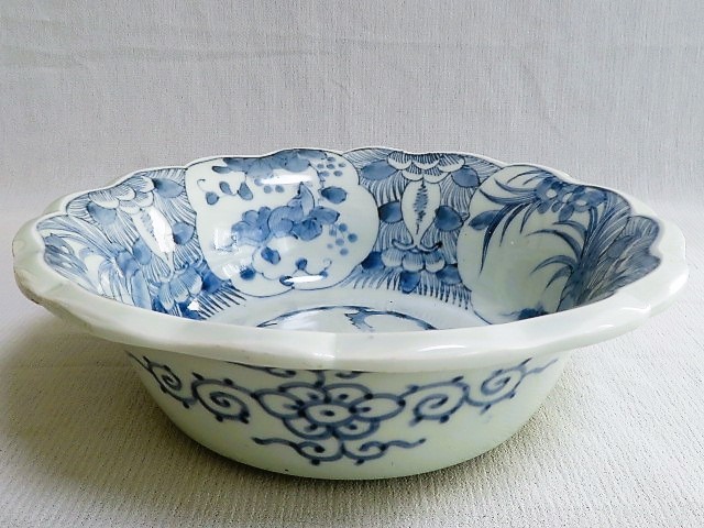 - 染付鉢 深鉢 輪花兜型鉢 No. A22-0111
