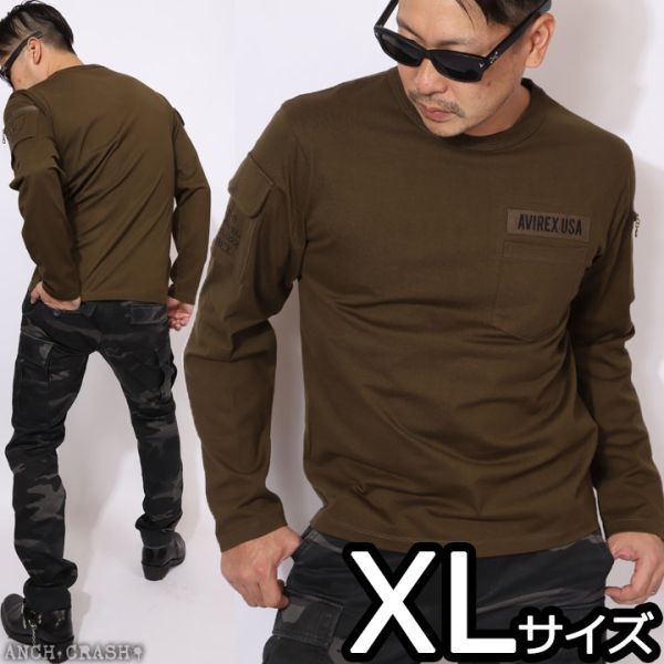 > AVIREX アビレックス ファティーグ 長袖 Tシャツ オリーブ【XLサイズ 】6113448 クルーネック ポケット ミリタリー