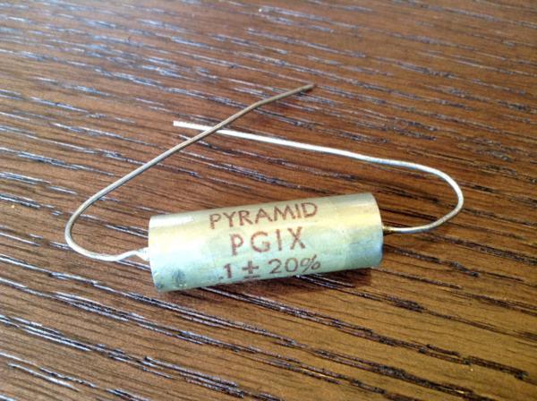 ビンテージ Pyramid コンデンサーVitamin Qタイプです。ギターではテレキャス等の純正数値が.1のシングルのスタンダード数値、300v、最適です。その他電子部品向け。Pyramid音良いです。独特の食いつき感、バランスの良さが特徴です。----------------------------------------------------------------