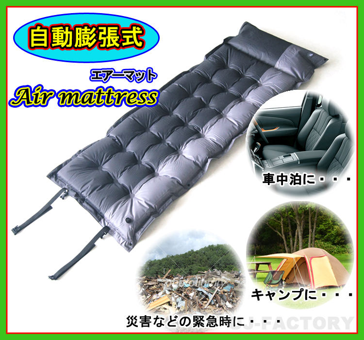 > 【即納/特価!x1個】★コレは便利!♪自動膨張式・枕付エアーマット【M】(183cm×64cm×5cm)★軽量 コンパクトな折りたたみ式