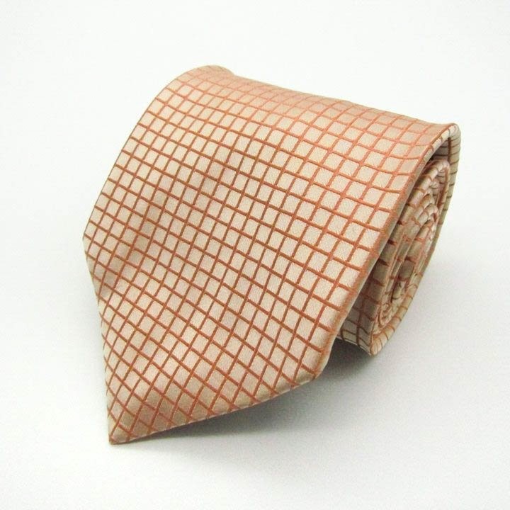 - エンリココベリ 格子柄 シルク ハンドメイド ー ブランド ネクタイ メンズ オレンジ系 良品ENRICO COVERI
