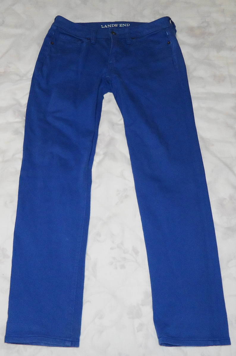 - 送0【ランズエンド ジーンズ レディース デニム ストレート 】ウエスト61 ストレッチ パンツ ズボン 青 LANDS' END 牛革ラベル付