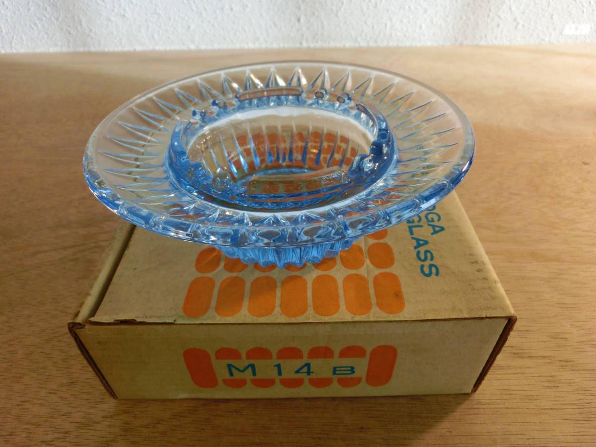 > SOGA GLASS 灰皿 ブルー 青 レトロ ポップ デッドストック レア 希少 雑貨 置物 小物入れ インテリア 曽我ガラス Ashtray