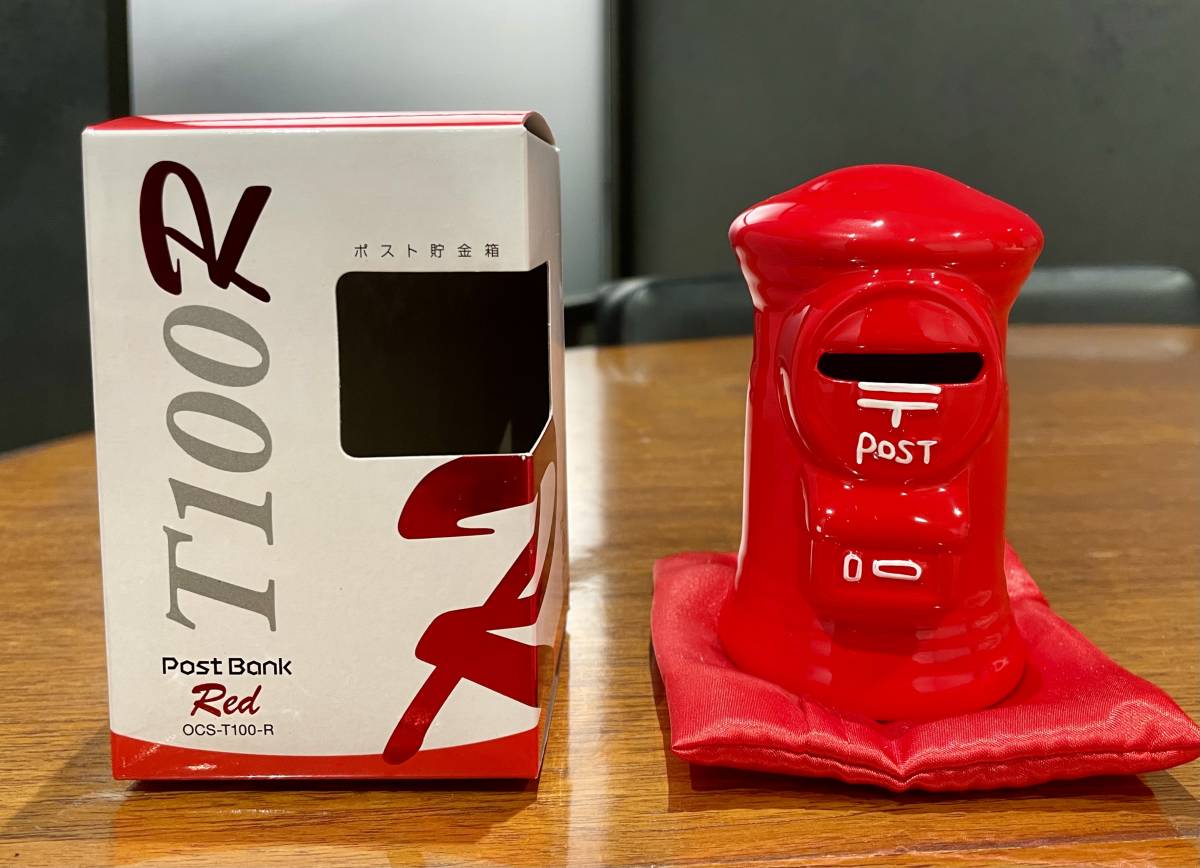 - ポスト貯金箱 新品未使用 ポスト型貯金箱座布団付き10cm 天面に塗装ムラあり 箱付き