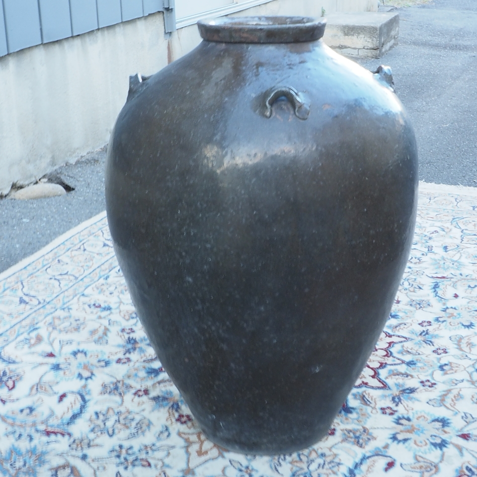 - 時代浪漫を感じる逸品!時代物 江戸期 水かめ 土器 庶民の生活土器 口径13cm 直径40cm 高さ60cm TYK502