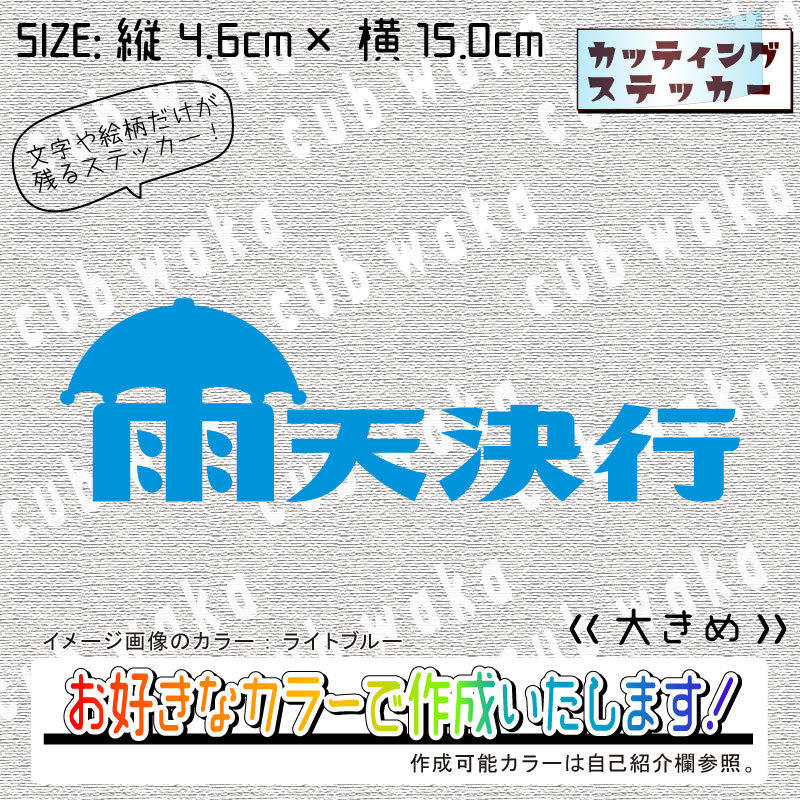 > 雨天決行①大ステッカー 文字絵柄だけ残るカッティングステッカー・カブ・車・バイク・二輪・トラック・リアガラス・リアボックス