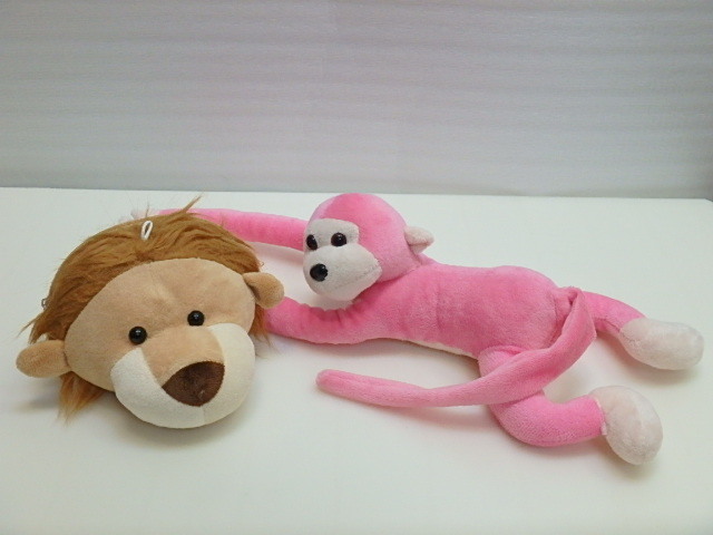 > 60s302k ぬいぐるみ 2点 テナガザル さる 猿 ピンク ライオン フェイスポーチ 中古 (北海道・沖縄・離島は発送不可)