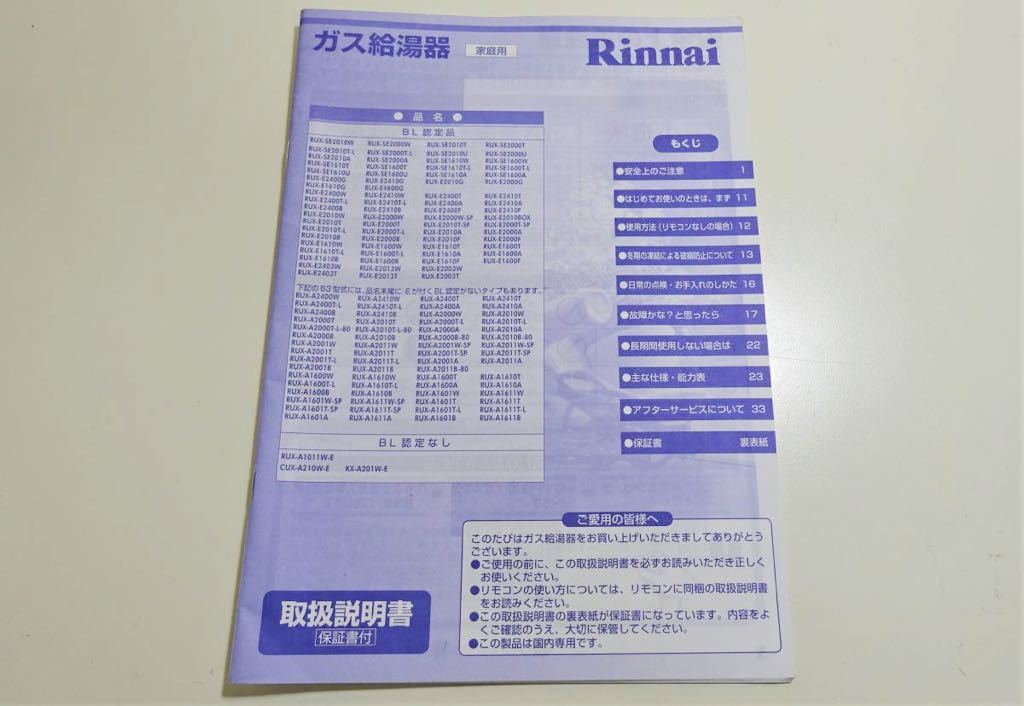 - リンナイ ガス給湯器★RUX-SE RUX-Aシリーズ★ 取扱説明書