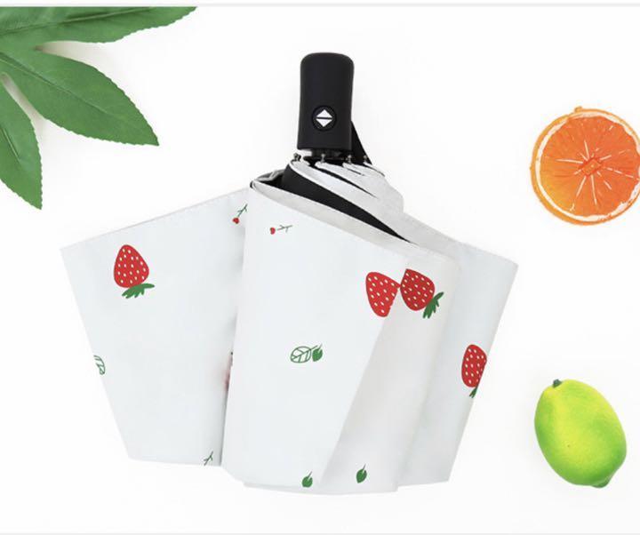 - 送料無料 イチゴ柄 自動 折り畳み日傘 雨傘 8本骨 折りたたみ日傘 UVカット