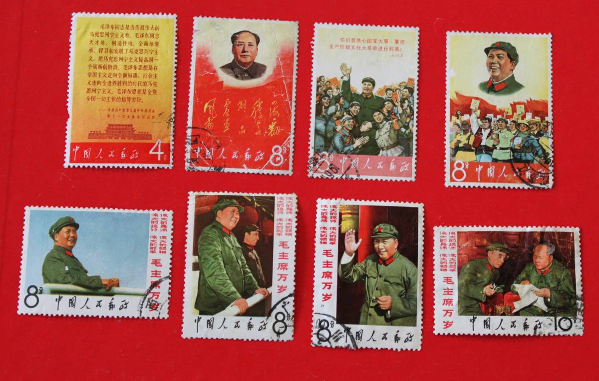 - 中国切手文2 毛主席の長寿をたたえる 8種完 ★消印あり