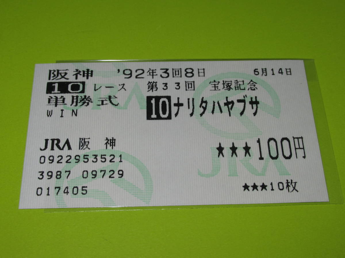 - 匿名送料無料 ★懐かしの単勝馬券 多数出品 ★ナリタハヤブサ 第33回 宝塚記念 GⅠ 1992.6.14 田島信行 JRA 阪神競馬場 即決!