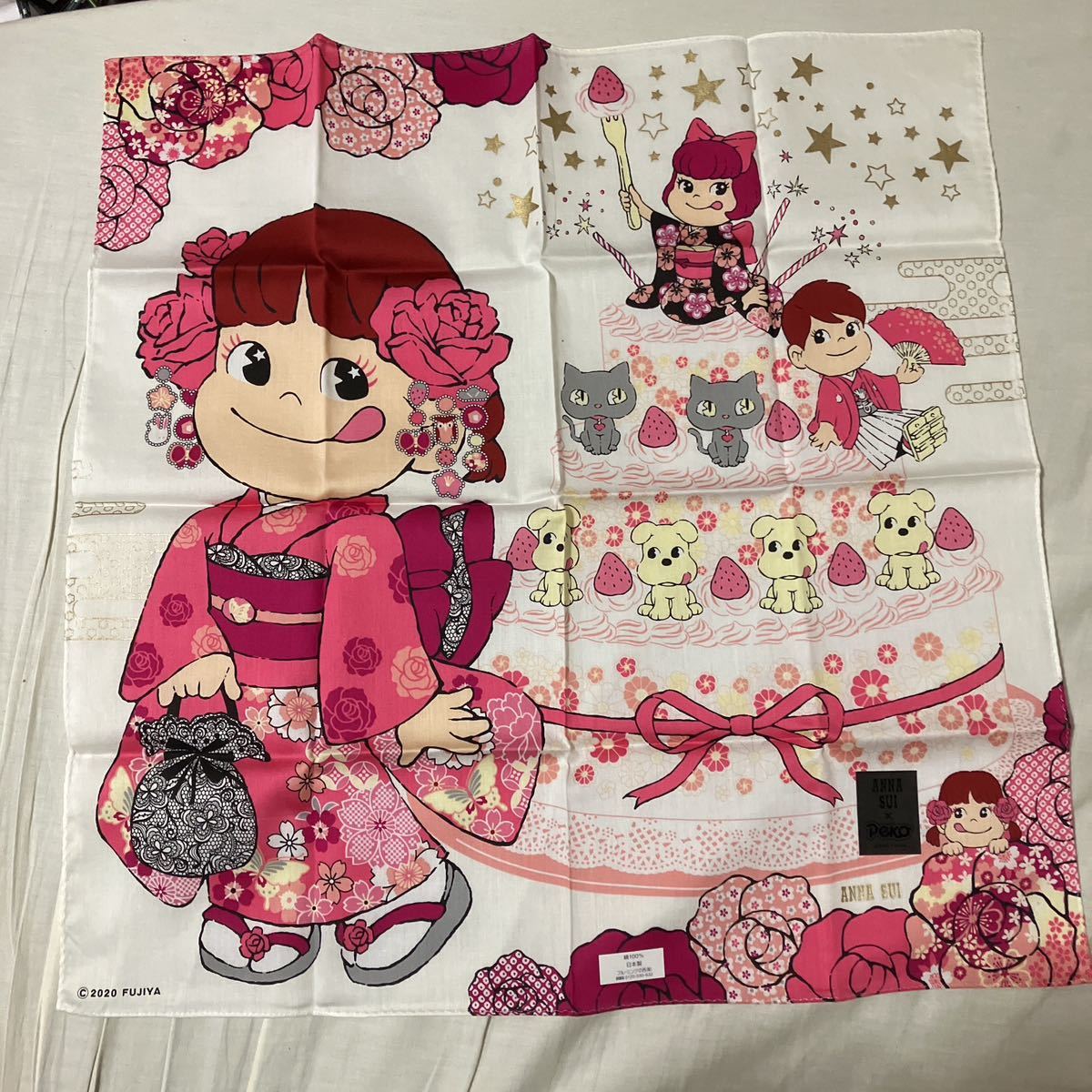 > ANNA SUI×不二家 コラボ ハンカチ 約50×49cm アナスイ ペコちゃん ポコちゃん ドッグ 完売2020年 レア