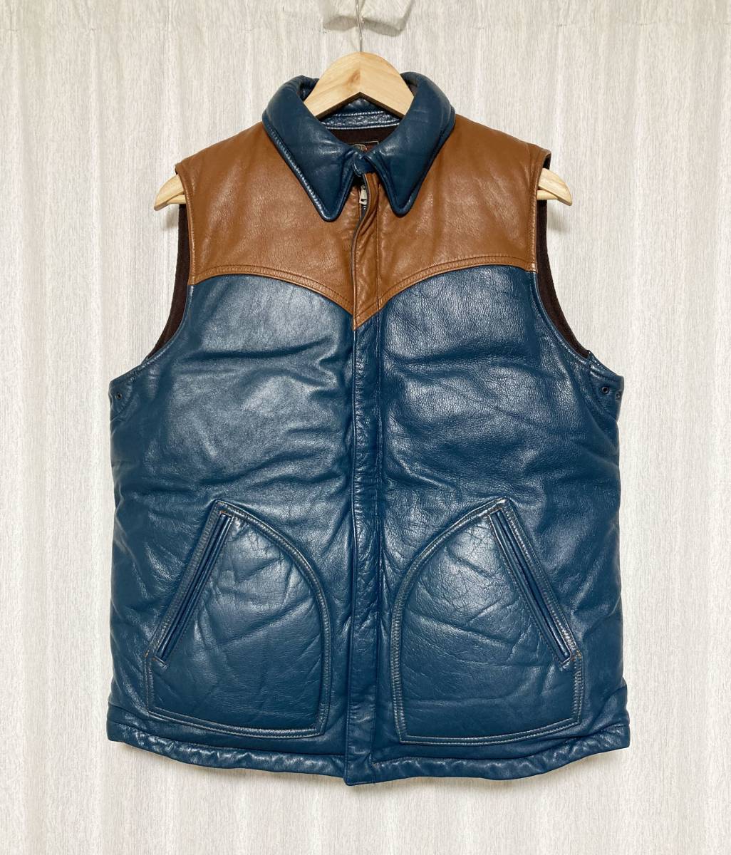 > 美品☆[DELUXEWARE] 定価74,800 Lot:D-08 レザーダウンベスト L 牛革 アンカーネイビー 日本 デラックスウエア
