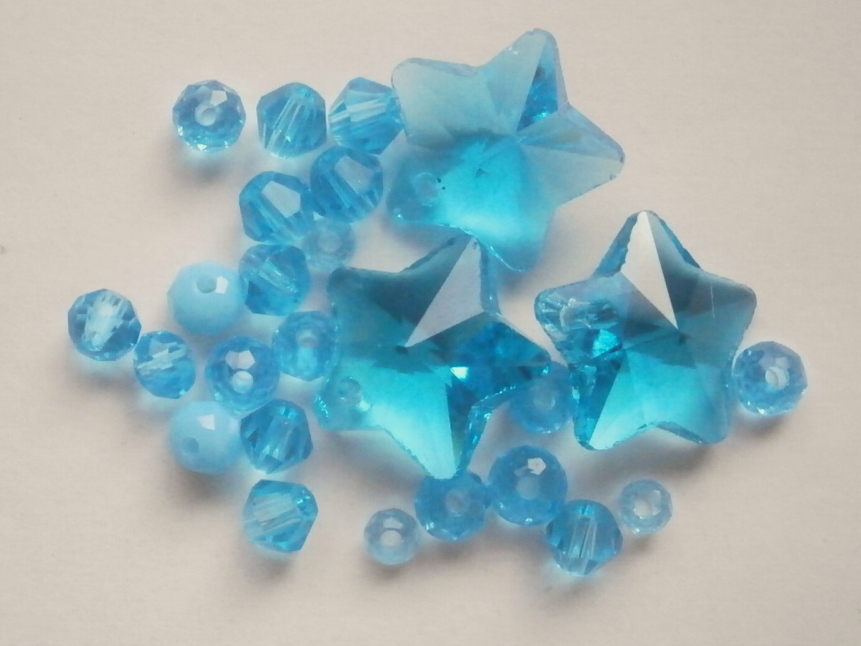 - ガラスビーズ★スター★1つ穴★ブルー系★B