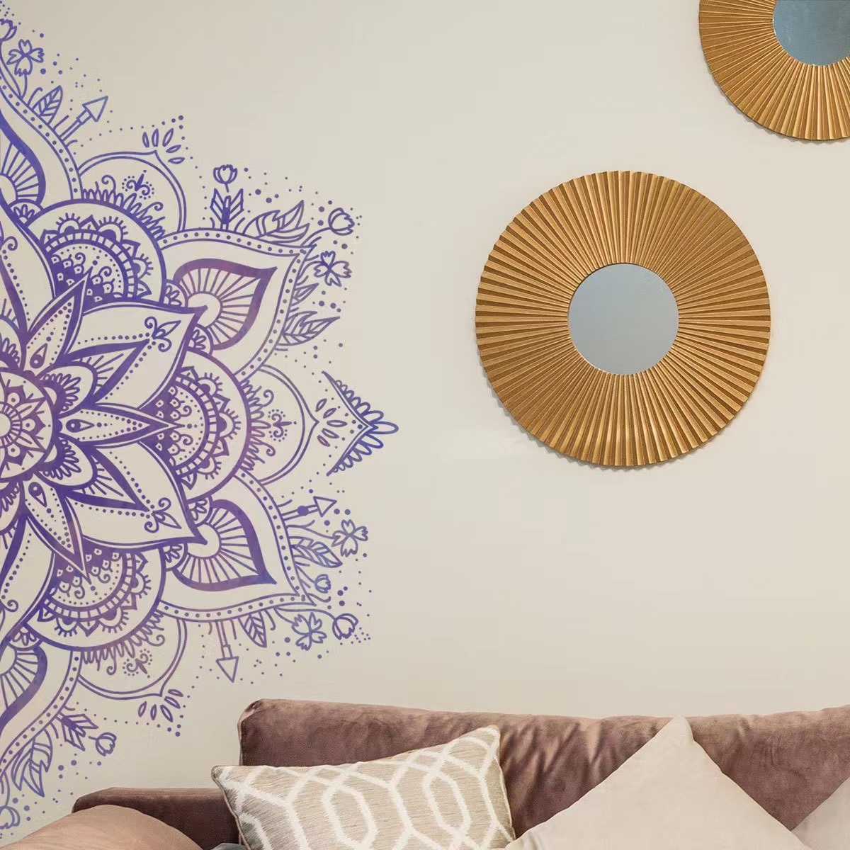 - ウォールステッカー YED031 曼荼羅 花 パープル 癒す DIY 壁紙 インテリアシート 剥がせるシール 送料無料
