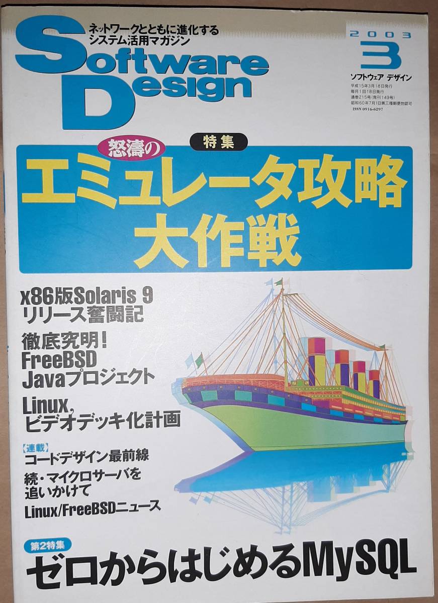 > 技術評論社 Software Design ソフトウェアデザイン 2003年3月 エミュレータ攻略/x86Solaris9/FreeBSD Java/Linuxビデオデッキ化/MySQL